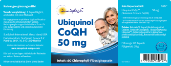 Zutaten: Reiskleieöl, Kapsel (Verdickungsmittel Gelatine, Farbstoff Chlorophyll), Ubiquinol (Kaneka UbiquinolTM), Antioxidationsmittel d-Alpha-Tocopherolacetat (Vitamin E), Rosmarinöl und Ascorbylpalmitat