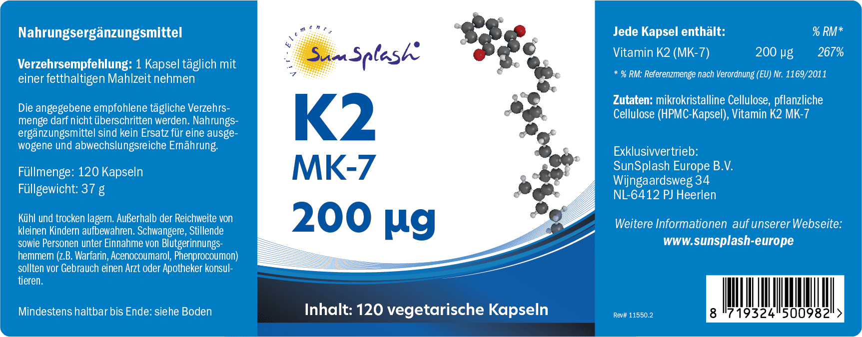 Erfahren Sie mehr über die Vorteile von SunSplash Vitamin K2 MK-7 200 µg für Ihre Gesundheit.